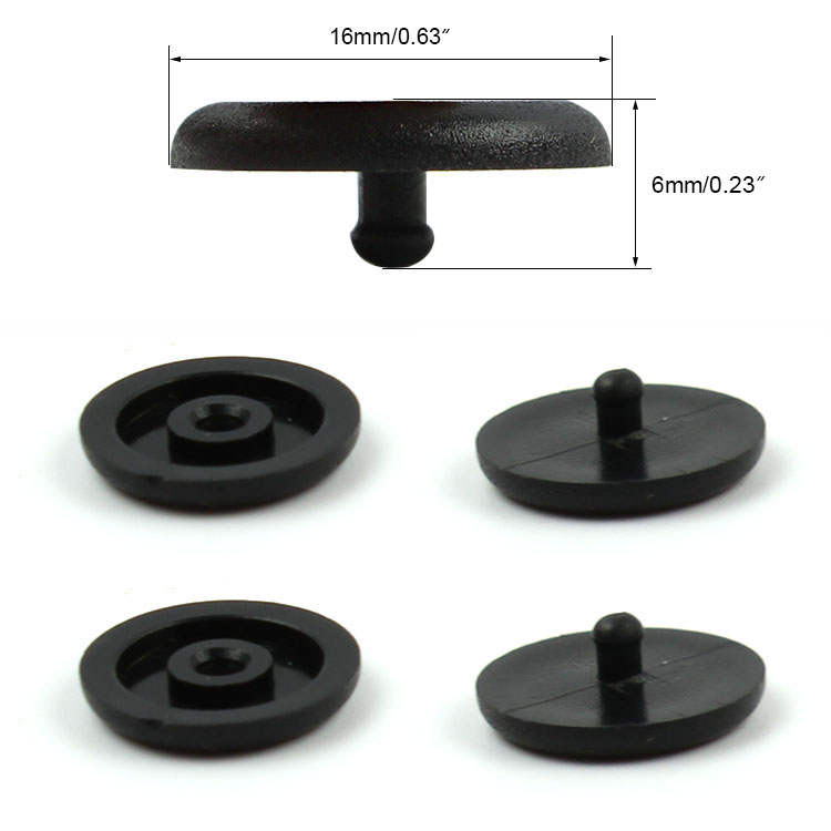 One seat belt stop button comes in two pieces/halves. One half has a pin and the other half has a hole.